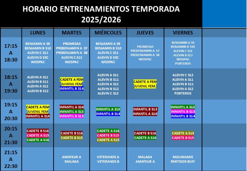 HORARIO ENTRENAMIENTOS TEMPORADA 2025/2026